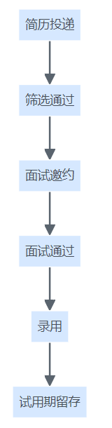 招聘数据分析漏斗图,展示从简历投递到试用期留存的关键节点数据转化过程。