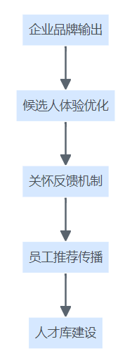 雇主品牌建设路径图,展示品牌输出、体验优化、关怀反馈、员工推荐到人才库建设的闭环过程。