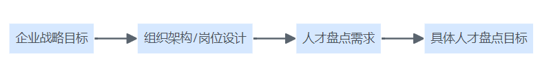 展示企业战略目标如何逐步转化为人才盘点目标的流程图。