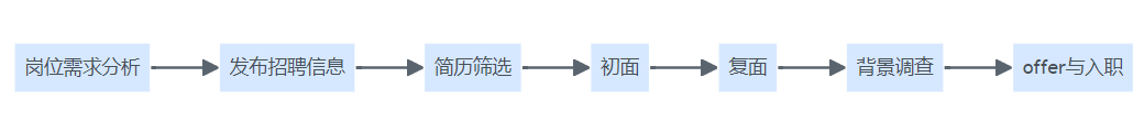招聘流程结构化示意图,展示岗位需求分析到入职的各关键节点