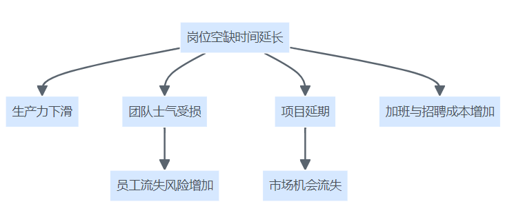 岗位空缺时间延长对企业生产力、团队氛围、项目进度及成本的多重影响结构图