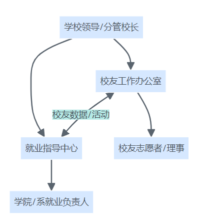 - 校友会/校友工作办公室:对接校友资源,维护校友关系;