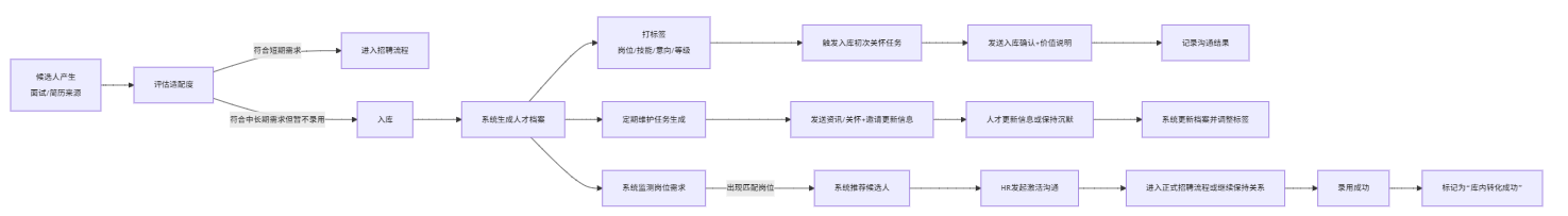 | 核心目标 | 存档简历,方便查找 | 持续经营人才关系,随时可用、可转化 |