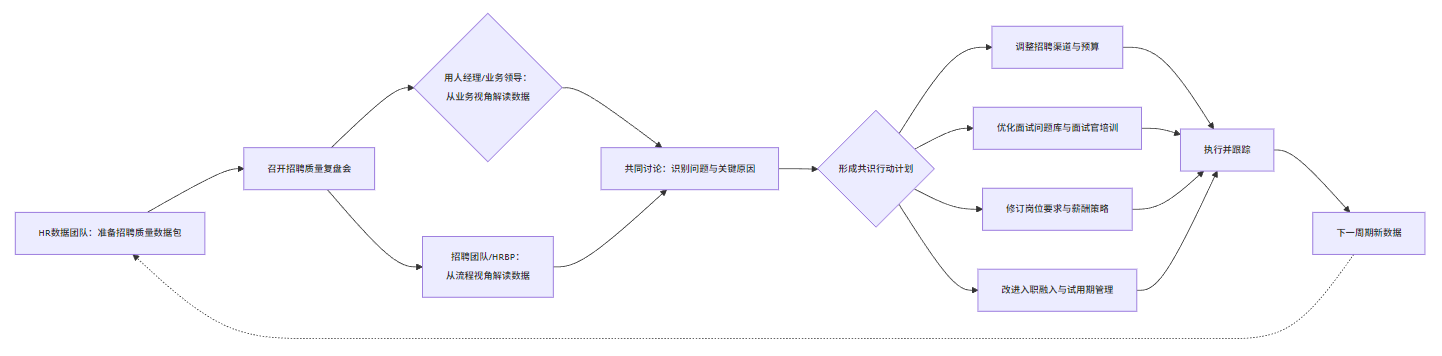 - 重视“评估之后的动作”,比如调整渠道、培训面试官、修订岗位说明书。