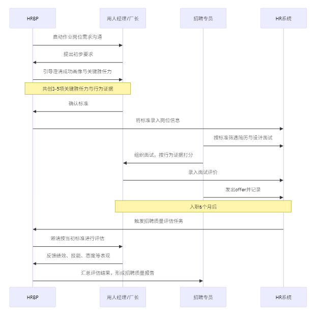 - 发展中的企业:正式建立“招聘质量复盘会”制度,让业务参与评价与改进;
