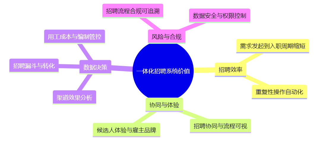 本模块核心结论:判断“哪个好”之前,必须先弄清“对我们来说,什么是好”。一体化招聘系统的价值,集中体现在:流程是否真正打通、数据是否沉淀可用、角色是否协同顺畅,以及投入产出是否匹配。