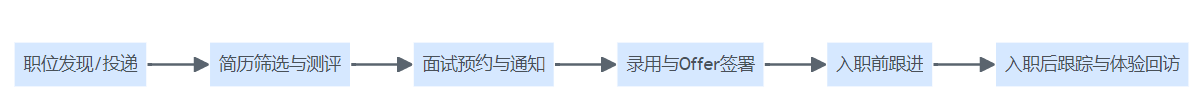 从实践来看,更成熟的候选人体验系统,往往会以“候选人旅程”为主线做功能设计: