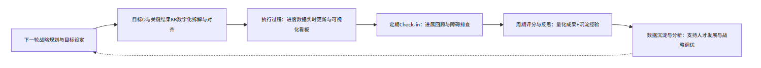- 优化阶段:把典型OKR案例和经验,转化为知识库、培训内容或流程改进。