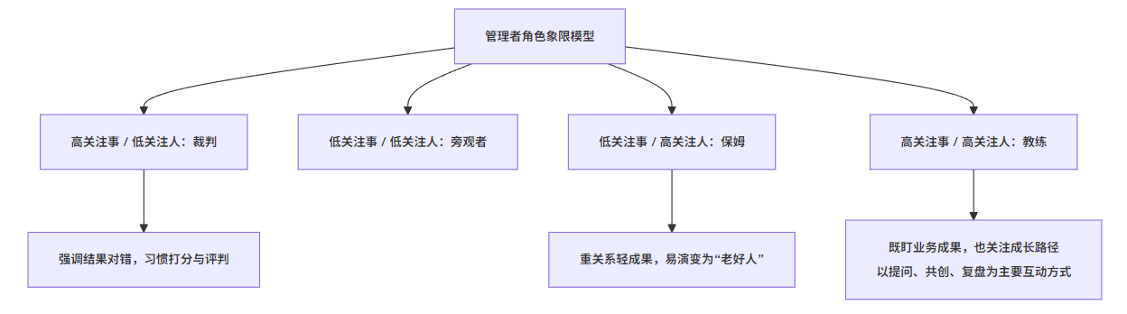 | 管理者角色 | 裁判、打分者 | 教练、辅导者 |