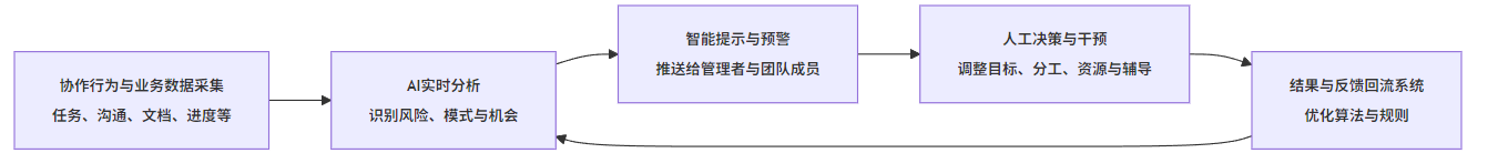 | 阶段三:推广与深化 | 将成功经验复制到更多团队并持续优化 | 制定组织级协作与绩效政策、开展领导力与教练式管理培养 | 扩展系统覆盖范围,建设统一的协作与绩效分析看板 | 协作实践纳入组织运营节奏,形成持续改进闭环 |