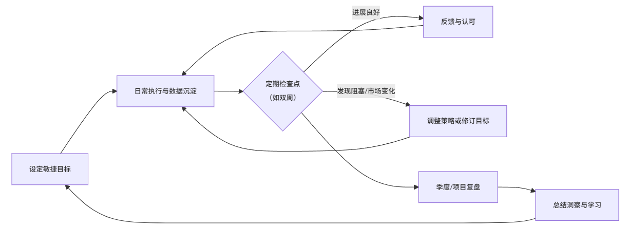 在高管层形成共识:敏捷目标设定不是“换个考核表格”,而是围绕战略、组织和文化的一场系统升级。 - 实践层:小步快跑
