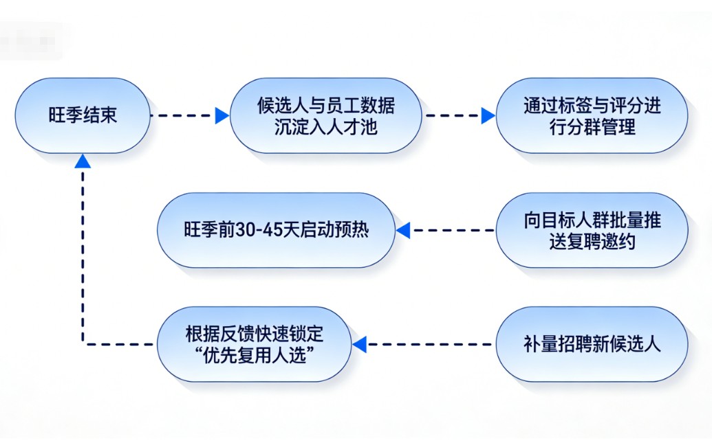 - 人才池与复用能力——是否能沉淀并运营“旺季人才资产”,做到“今年招过的人,明年一键唤醒”?