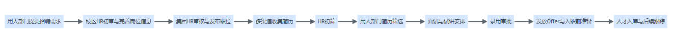 - 一张“教育机构招聘全流程示意图”,展示从岗位需求到入职的关键节点;