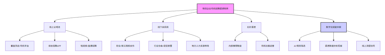 先用一张框架图,把“司机招聘渠道矩阵”的核心结构展示出来: