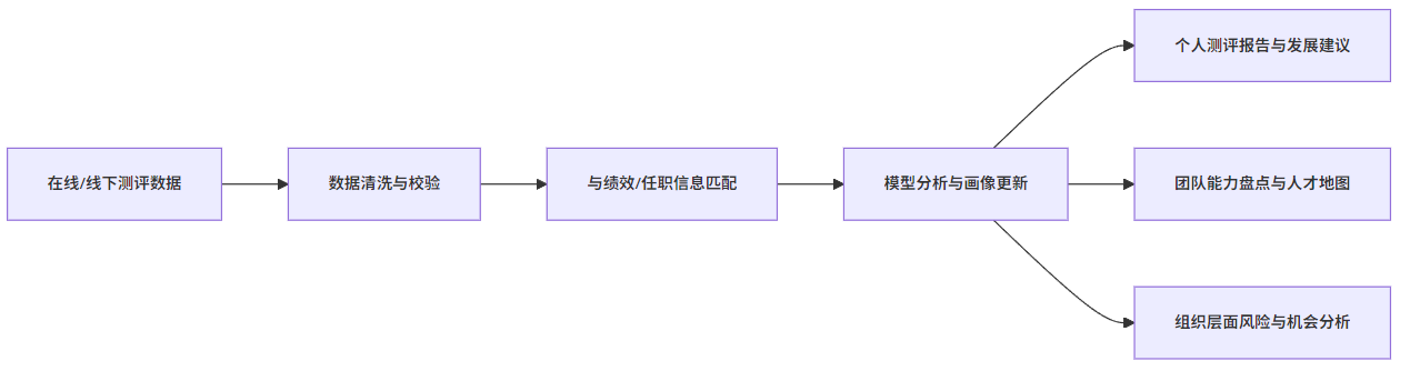 - 从“一次性测评”到“连续洞察”:不再只在招录或晋升时测一次,而是结合日常项目反馈、360评估等,形成更连续的人才画像。