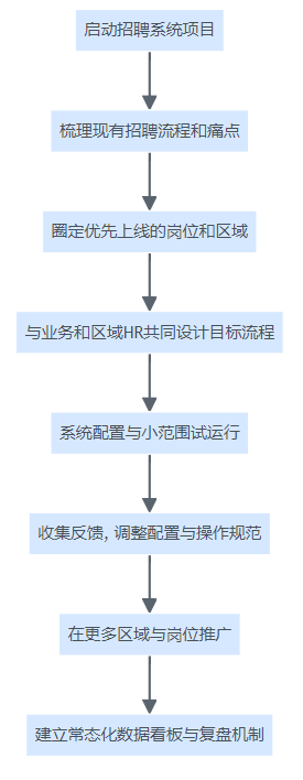 建议先选定1–2类岗位、1–2个区域,做小范围试运行,把“流程跑顺、角色跑明白、数据有产出”作为第一阶段目标。