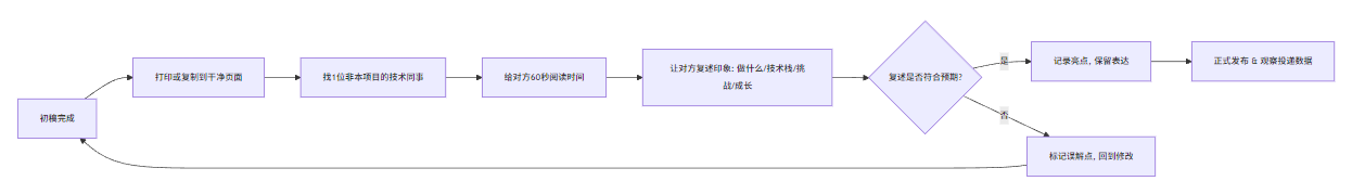 在这个过程中,技术同事的“误解点”往往就是候选人真实的误解风险,而如果对方看完后的印象是“感觉就是普通的CRUD业务,没有什么特别”“不知道你们是用 Java 还是 Node 在做后端”“看不出来这个岗位对我有啥成长”,等那就说明你的卖点还没写到位,或关键信息埋得太深。