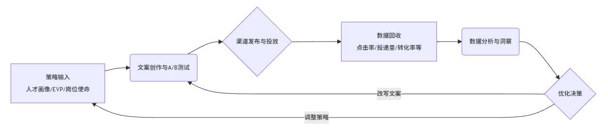 在这个闭环中,HR的角色已经不再只是“写文案的人”,而是把人才画像与雇主品牌翻译成内容策略的人,用数据判断文案效果、提出优化建议的人,并协同业务持续打磨岗位叙事的人。这实际上是一种向“人才营销官(Talent Marketer)”的角色演进。