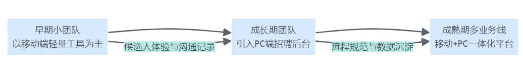- 这一阶段,需要引入PC端招聘系统作为后台管理,同时强化移动端对业务和候选人的触达。