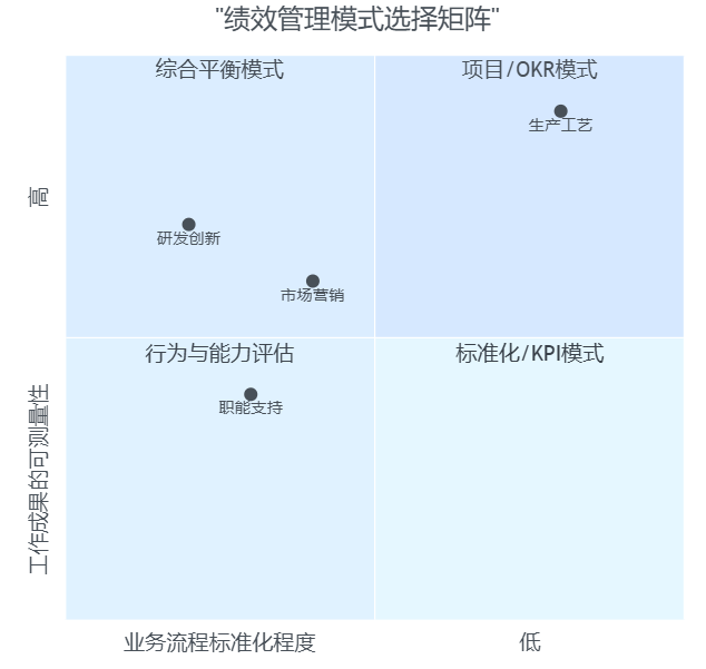 针对“KPI与OKR难以取舍”的混乱局面,一个较为可行的方向是:不再强求一种工具通吃所有场景,而是根据业务特性分层分类地设计绩效模式。