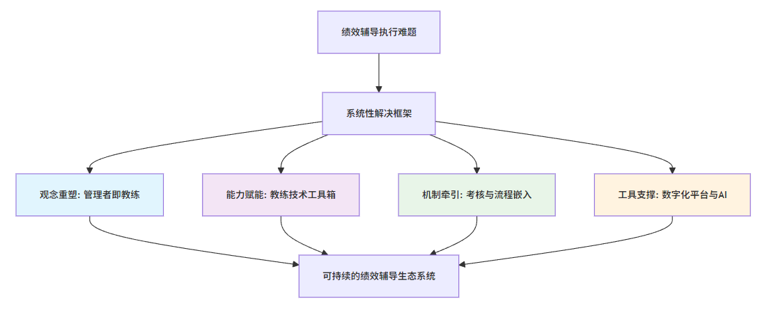 从中可以看到不同企业的突破口可以不同,但凡是走出来的都不是“只做一件事”,而是组合拳,并且四个维度至少要有两三项形成合力,绩效辅导的执行难题才有可能真正被撼动。