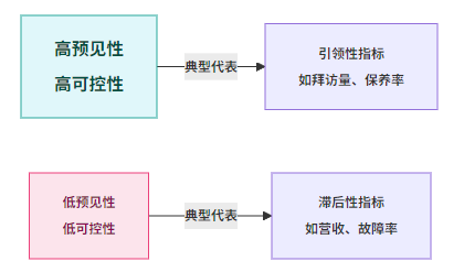 - 事后可见,如季度营收、最终项目交付质量;