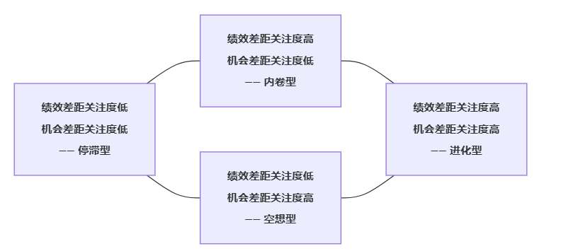 - 进化型:既严肃管理当前绩效差距,又用绩效管理系统去发现、孵化机会差距,是最具长期竞争力的一类。