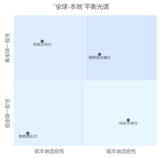 可视化来看,跨国企业在“全球一致性”和“本地适应性”之间通常要找到一个动态平衡点: