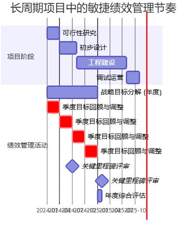 可以用一个甘特图式示意,说明在长周期项目中如何嵌入这种敏捷绩效节奏: