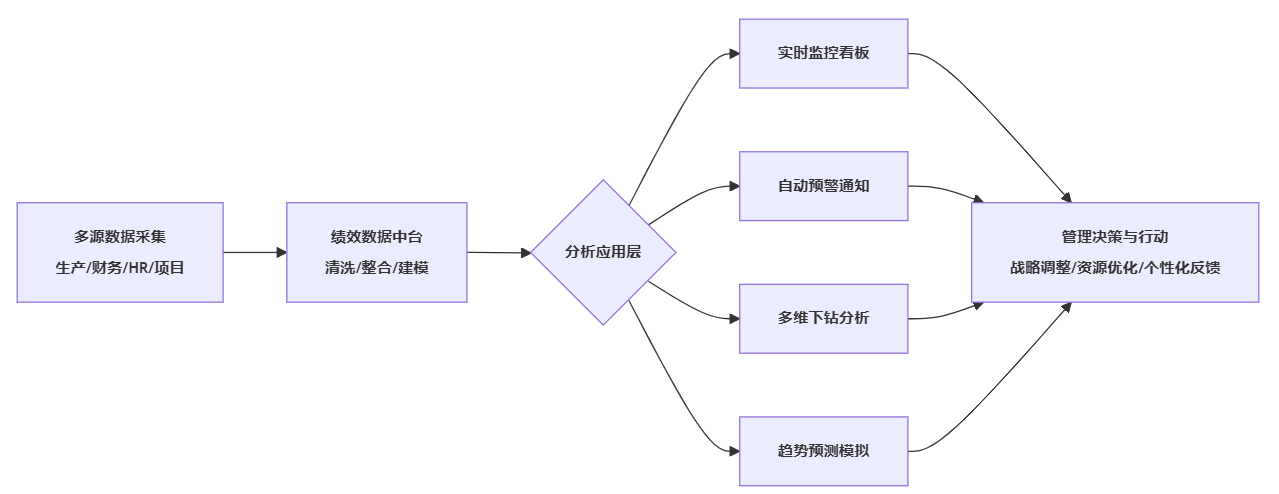 - 上游:不再把绩效数据狭义理解为“评分结果”,而是把所有与绩效相关的业务、财务、人力数据纳入视野;