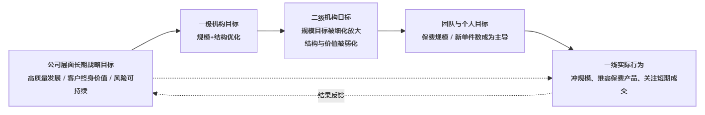 例如,总部强调“结构优化”,但到基层时更多被理解成“多卖高保费产品”,而不是在客户需求匹配、长期价值上做文章。 - 责任边界模糊,协同成本高