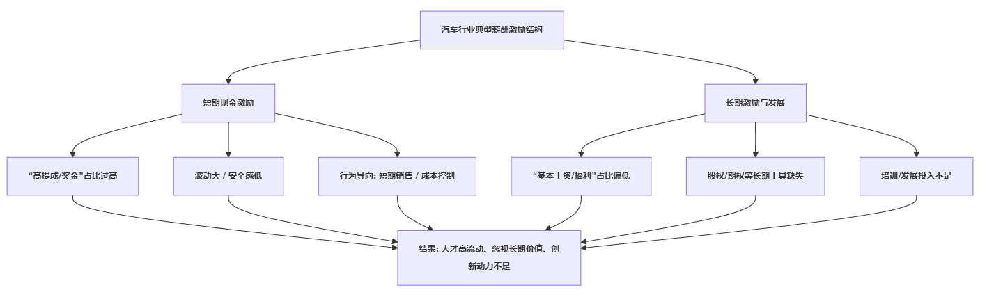 从全行业视角看,汽车企业薪酬激励结构呈现一个明显特征:短期现金激励占比高,中长期激励工具薄弱。