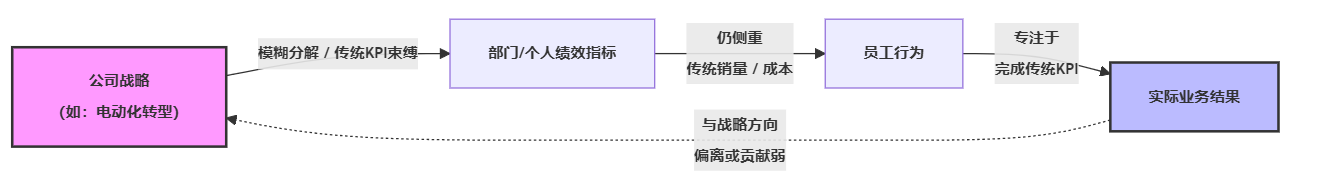 关键矛盾在于: 战略讲的是“转型”,绩效考核讲的还是“维持现状”,组织自然倾向于选择后者。
