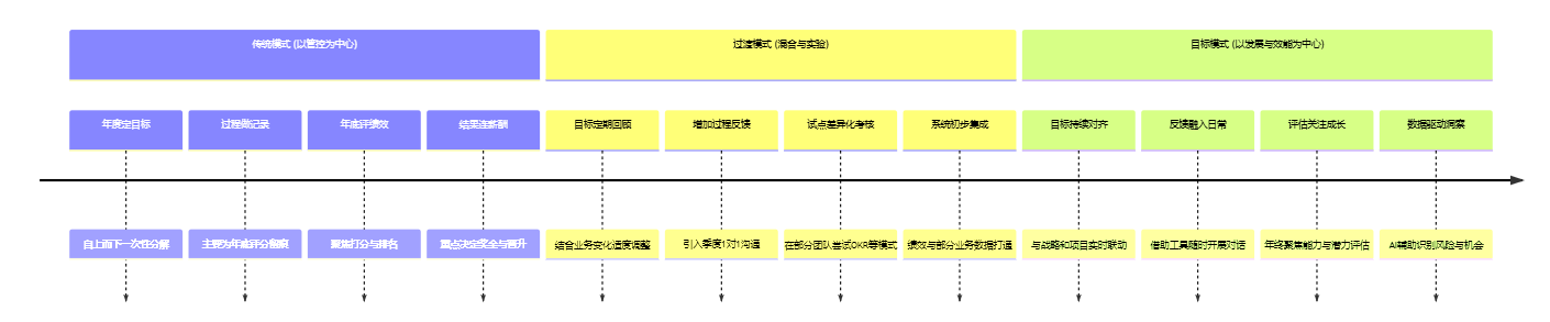 | 周期特性 | 年度/半年度为主,回顾式评估 | 更加强调季度回顾、持续反馈与动态调整 |