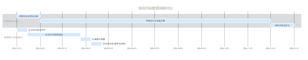 把目标“写进系统”只是第一步。更大的变化是:目标管理的节奏,正在从年度大周期向更短周期演进。