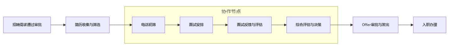 - 参与方:招聘团队全员、用人部门面试官、招聘负责人