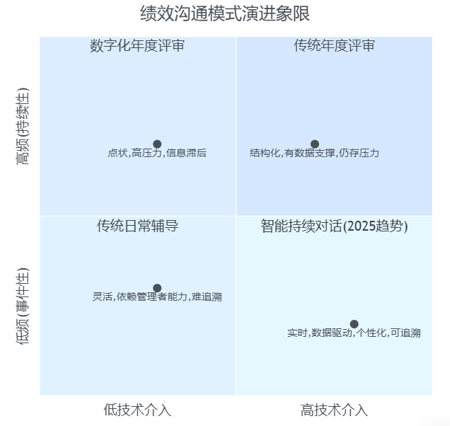 | 技术支持 | 纸笔/Excel/简单表单 | 绩效系统+持续反馈工具+AI+VR情景模拟 |