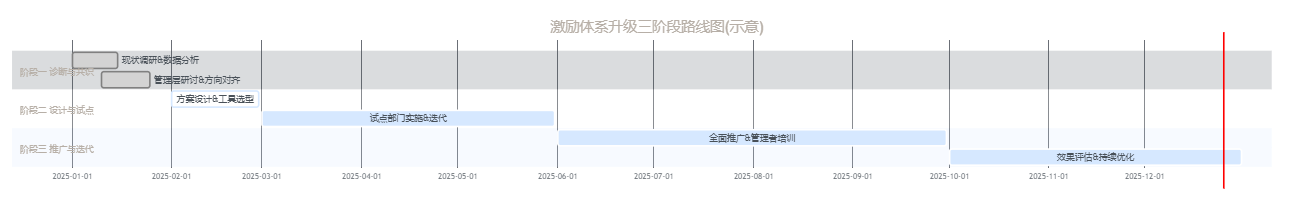 从变革管理的角度看,绩效激励升级更像一场“组织手术”,需要有节奏地推进。可以参考这样一条三阶段路线。