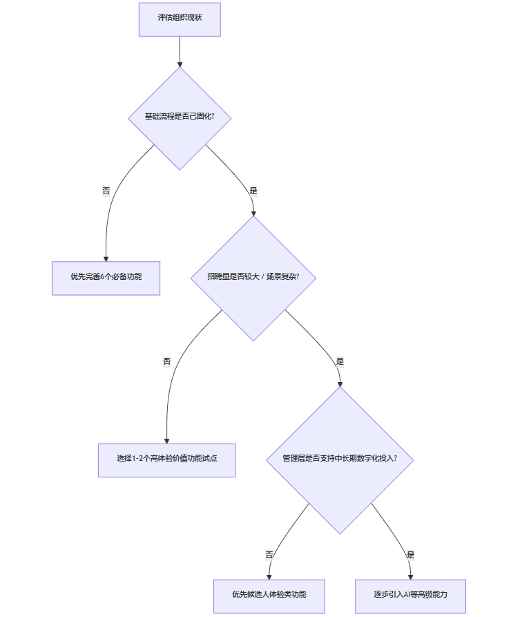 | AI面试评估 | 暂不建议优先 | 试点可选 | 条件成熟可逐步引入 |