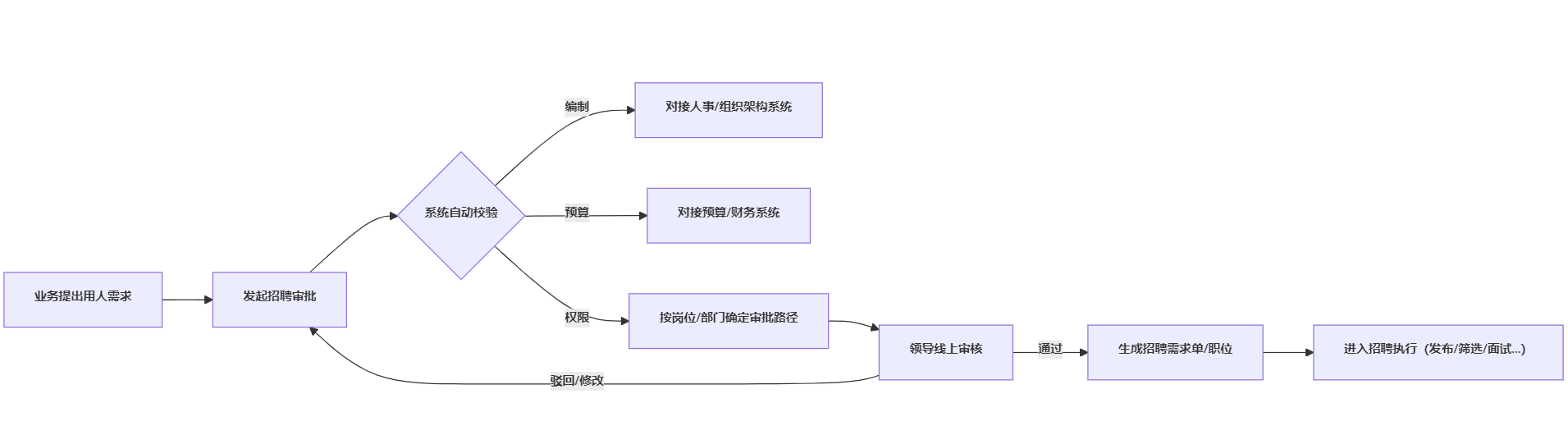 - 不同规模、管控模式、用工结构的企业,在招聘审批功能组合上会有差异;