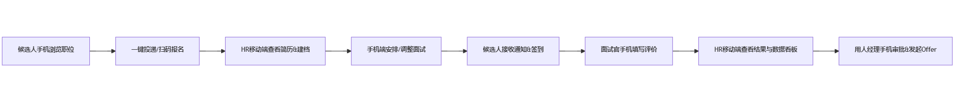 不少HR都有类似场景:通勤路上在手机上回候选人消息、线下宣讲会用手机扫码收简历、业务领导临时在微信问“这几个候选人现在到哪一步了?”——招聘团队的工作早已移动化,但企业自己的招聘系统,依然要求“回到电脑前”才能完成关键操作。