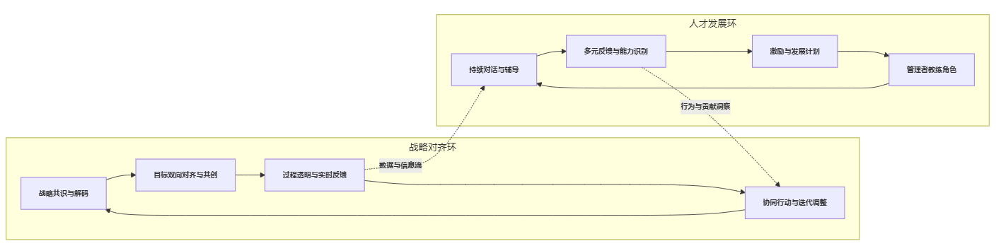 | 过程管理 | “期初定指标、期末算分数”;缺乏中途校验与纠偏;反馈以批评为主,管理者更像“警察” | 持续教练式对话:频繁一对一/团队check-in;聚焦问题与资源;更多即时反馈和正向肯定 |