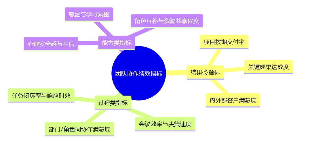 可以用一个简单的思维导图来刻画团队协作绩效指标的结构: