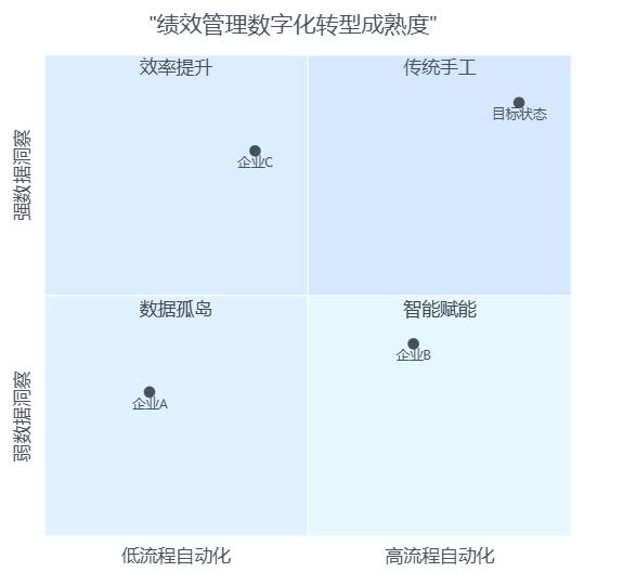 为了帮助企业判断自身所处位置,可以用一个简化的“数字化绩效管理成熟度象限”进行自我评估。