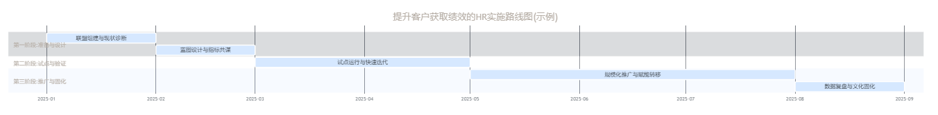 - 为这个小实验设定清晰目标与观察周期,用事实去验证人力资源举措对客户获取绩效指标的影响。