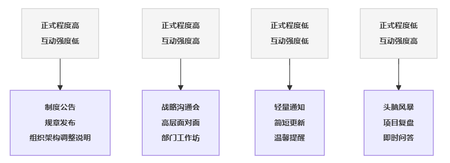 (1)按“正式程度 × 互动强度”选择渠道