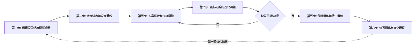 本模块的核心结论是:再好的方法论,如果没有一条可操作的实施路径,依然难以落地。一个更现实、风险更可控的做法,是通过“六步闭环”逐步推进。