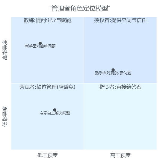 不同场景下管理者可以在不同位置切换,但组织整体要刻意向“教练”象限倾斜,否则再好的指标体系,也会被“只打分不辅导”的管理方式抵消掉。