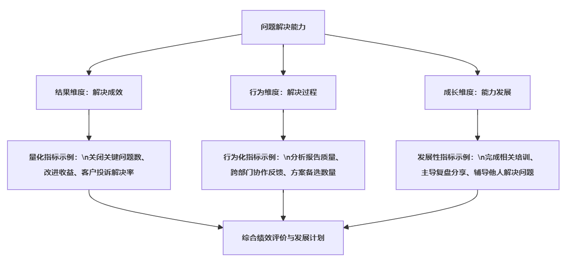 只有在这一层厘清之后,“问题解决能力绩效指标”才有了扎实的业务基础,而不是空洞的行为标签。