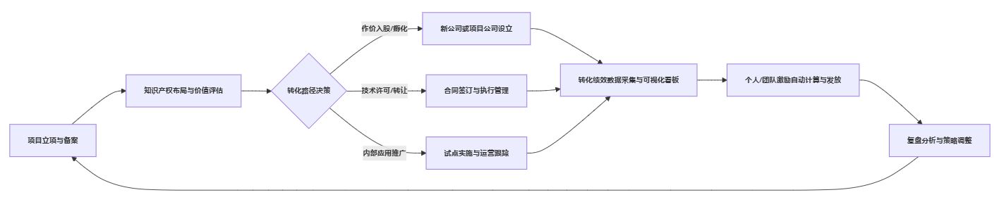 - 科研管理部门联合业务和法务,绘制一张简单的“转化路径决策图”,对应推荐2–3条主路径;